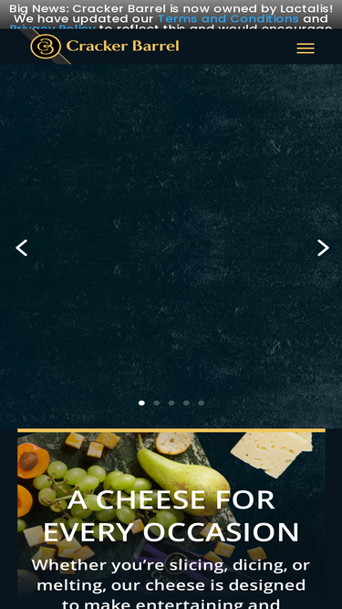 88%Offering more than 17 varieties, Cracker Barrel cheese was designed to fit perfectly on a cracker and to suit taste preferences for any occasion.