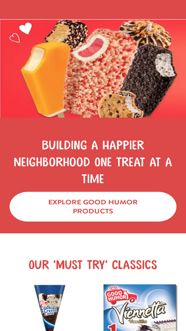 82%Browse your favorite Good Humor ice cream products and frozen desserts, including cones, sandwiches, bars and enjoy them wherever you are!