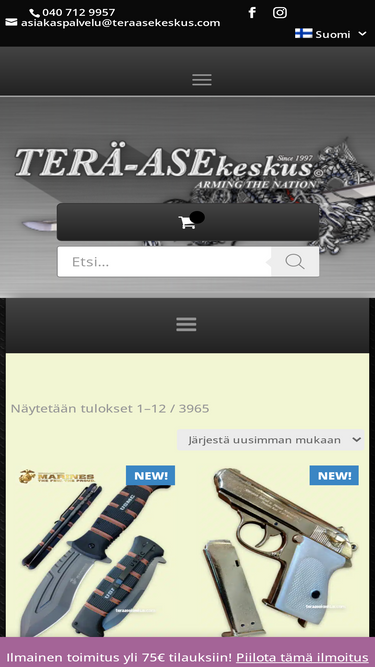 90%TERÄASEkeskus Ase- ja veitsikauppaan erikoistunut yritys. Meiltä löydä Miekat, Veitset, Puukot, Jousiaseet, Monitoimityökalut ja Tarvikkeet