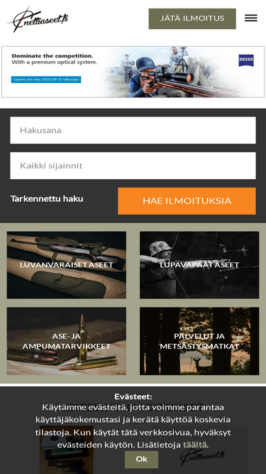 86%Suurin maksuton aseiden myyntisivusta Suomessa. Osta, myy ja tee kauppaa aseista, ammuksista, ampumatarvikkeista, palveluista ja metsästys ja ulkoiluvarusteista.
