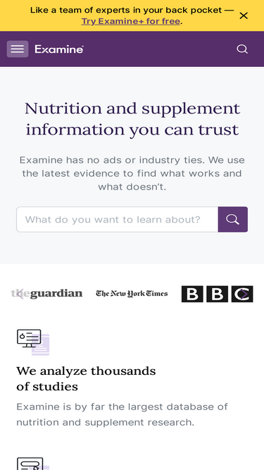 100%Examine simplifies nutrition and supplementation — through meticulous analysis of the latest scientific research — to help answer your questions on how to be healthier.