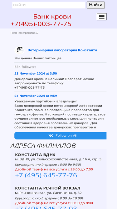 первая ветеринарная лаборатория в россии, выполняющая в полном объеме контроль качества проводимых исследований. банк донорской крови. более 1000 исследований. анализы на дому.