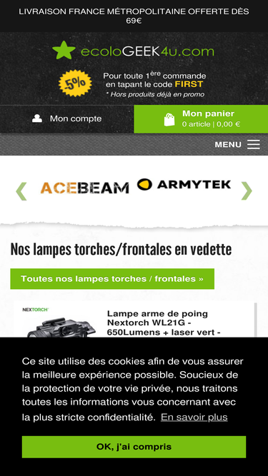 100%Boutique spécialisée dans la vente de lampes torches, frontales ou d'ampoules led pour l'éclairage intérieur.