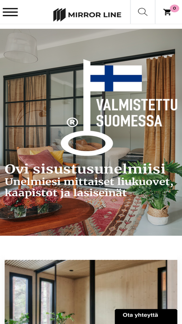 87%Mirror Line on kotimainen perheyritys, joka valmistaa mittatyönä liukuovia, lasiseiniä, kaapistoja ja muita säilytysratkaisuja.