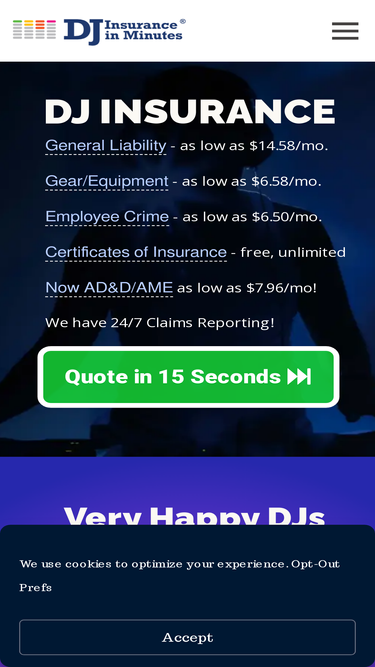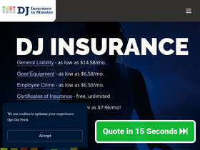 100%DJ insurance from $14.58/mo. Get a Quote in seconds! Liability, Gear & Crime Protection. Free Certificates. Get Instant Coverage. Covers all your events for 12 months. 1-800-364-2433