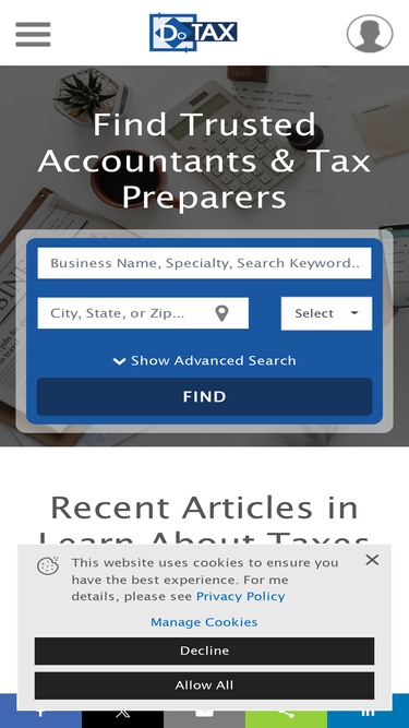 79%DoTax connects you with thousands of verified accountants and tax preparers nationwide. Search for trusted professionals, read client reviews, and explore helpful tax articles and resources. Find the right accountant and simplify your tax needs with DoTax.. Stay informed with DoTax's expert articles on tax preparation, accounting, and financial planning. Find answers to common tax questions and tips for better financial health.