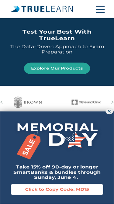 96%Master your medical exams with TrueLearn SmartBanks—detailed explanations, trusted sources, and analytics to help you test your best.