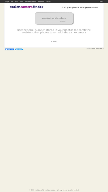 stolencamerafinder reunites people with lost or stolen camera equipment by searching the web for the serial numbers embedded in jpegs.