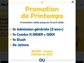 81%Promotion Lève-tôt Bénéficiez d’une réduction de 5 $ surles admissions pour les enfants de3 ans et plus tous les finsde semaine ! Offre valide les samedis et dimanches.Arrivée entre 9h00 et 9h30. Aucune réservation requise ! Vous planifiez une fête ?Réservez à l’avance pour quetout soit prêt et encore plus amusant ! Voir horaire Certificat […]