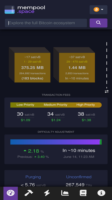 100%Explore the full Bitcoin ecosystem with The Mempool Open Source Project®. See the real-time status of your transactions, get network info, and more.