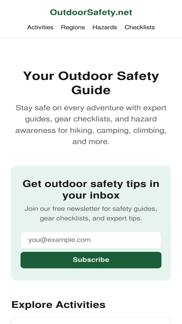 100%Stay safe outdoors with expert guides on hiking, camping, climbing, and more. Safety tips, gear checklists, and hazard guides for every adventure.