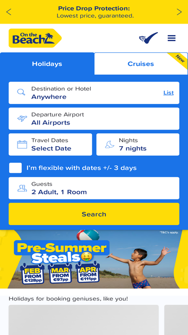 84%On The Beach Holidays for 2025 & 2026. Book your perfect package holiday deal with low €10pp deposits.