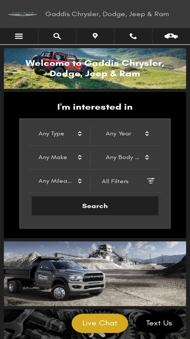 100%visit bill gaddis for a new ram 1500, jeep compass, dodge charger, chrysler pacifica & more! we carry used cars, have service, parts, & financing available.