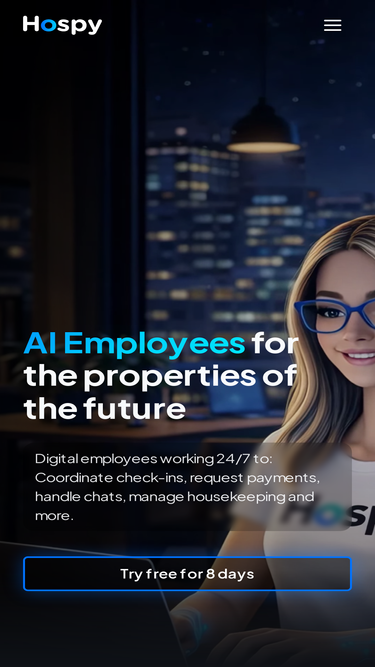 72%Hospy es un empleado digital que se encarga de tareas operativas en tu alojamiento, trabajando 24/7 sin descanso.