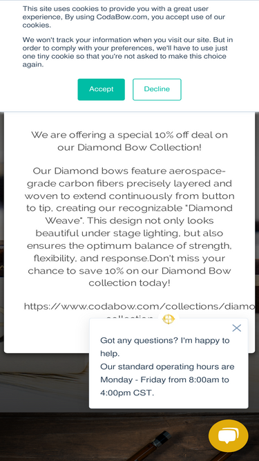 86%CodaBow policy page for warranty, trials, returns, privacy, and more. We stand by our customers and back our bows with the best warranties in the industry.