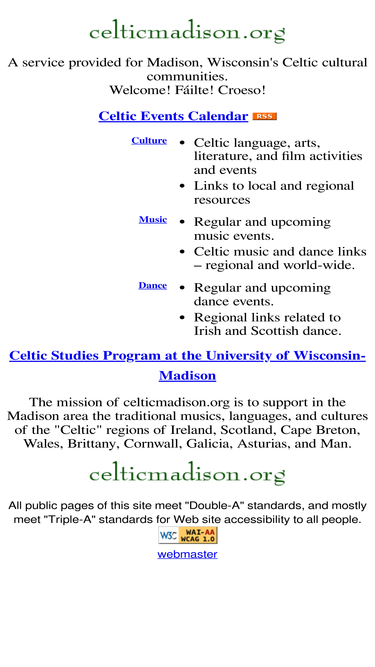 Celtic music and culture in Madison, Wisconsin. Events calendar, links, and more about local Celtic concerts, bands, classes, dance, language, and arts.
