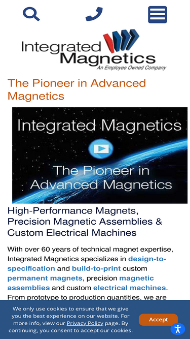 87%with over 60 years of technical magnet expertise, integrated magnetics is a leading manufacturer of custom magnets, magnetic assemblies & electrical machines.