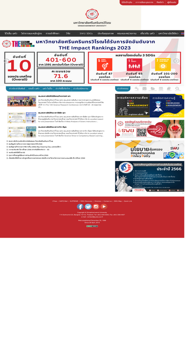 100%srinakharinwirot university is a government sponsored university located in bangkok, thailand. it was established in 1949 as the higher teacher training school at prasarnmit and became the college of education in 1953. in 1974, the college of education became a comprehensive university by a royal decree of his majesty king bhumibol adulyadej, who graciously granted the new university the name of srinakharinwirot (see-na-ka-rin-wee-rote), which means ‘the glory of the city.’ currently, the university has 14 faculties and 12 research institutes and centers located in prasarnmit campus in central bangkok and ongkharak campus in nakhon nayok province.