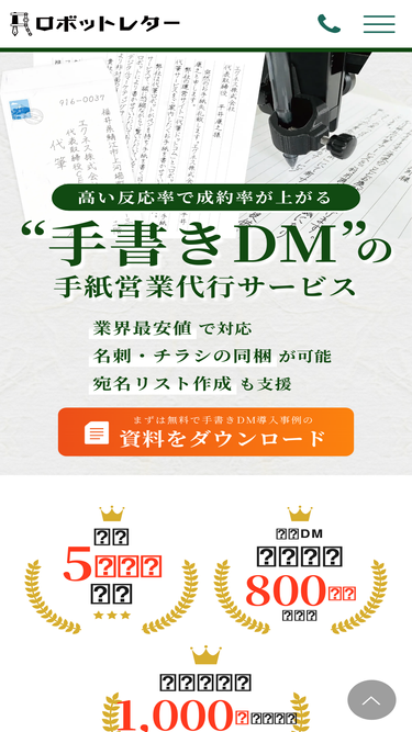 64%ロボットレターは最新ロボットが手書きDM(ダイレクトメール)や営業手紙、ハガキ、メッセージカードの代筆代行をおこなう営業支援サービスです。企業様のアポイント獲得や各種取引のリピート率向上などにご活用いただいております。どこよりも安い業界最安値にてご提供中です。