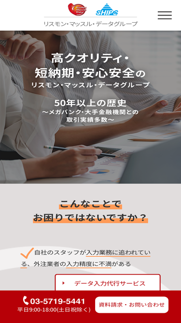 63%会社概要(シップス)。データエントリー(データ入力)やスキャニング、印刷・封入・発送などを提供。リスモン・マッスル・データ/日本アウトソース