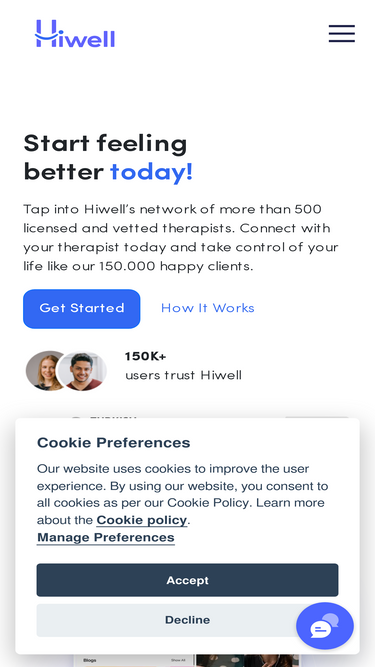 49%Online terapi platformu Hiwell, yetkin ve uzman online psikologlarla çalışarak güvenilir, profesyonel ve uygun fiyatlarda online terapi hizmeti sağlar.