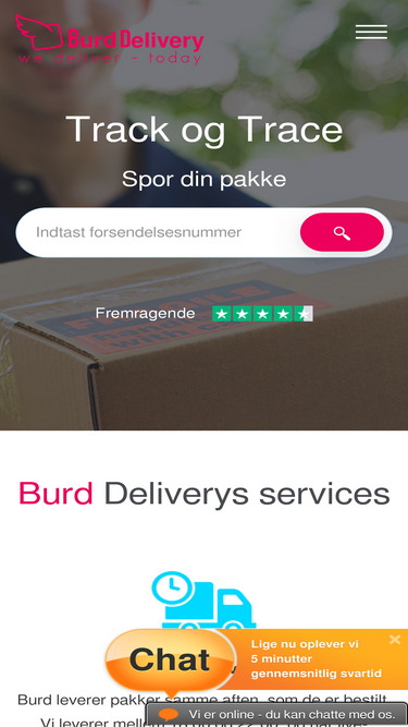 86%Burd Delivery er en dansk logistikvirksomhed, der tilbyder samme-dags levering for webshops med Europas højeste rating på Trustpilot. Burd Delivery tilbyder også 0-2 dages levering til hoveddøren, men som er billigere end pakkeshop leveringer