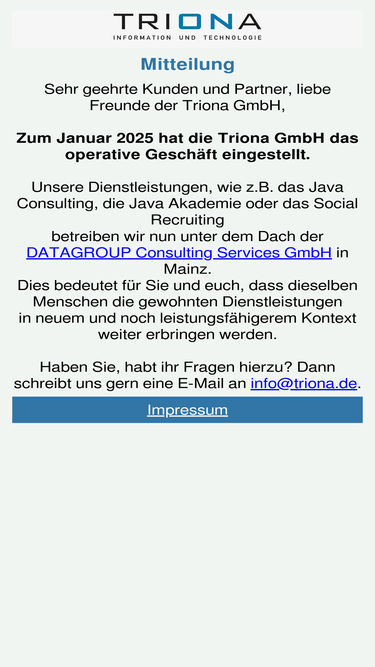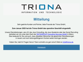 62%triona ist ein innovatives it-unternehmen in der metropolregion frankfurt/rheinmain. wir bieten maßgeschneiderte lösungen für den mittelstand und großkunden. produktiv, professionell und partnerschaftlich begleiten wir unternehmen auf dem weg zur digitalisierung.