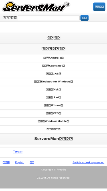 88%ServersMan Any Device becomes a Server! ServersManは、フリービット株式会社が提供する、iPhoneやAndroid、Windows Mobileのスマートフォンや、デジタル家電をサーバーやストレージにするサービスです。 | あなたのスマートフォン、タブレット、PCが無料でクラウドストレージに!