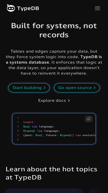 80%typedb enables progressive engineering teams to build innovative data applications faster, with a modern programming paradigm that avoids the complexity in data architecture.