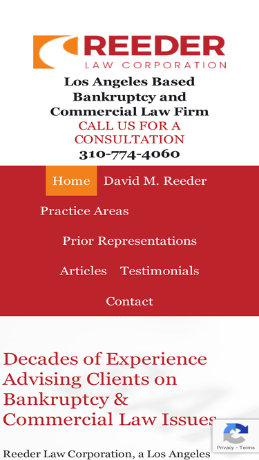 100%Reeder law corporation We represent clients with diverse interests, including companies that are reorganizing, creditors’ committees, bankruptcy trustees, individuals, lenders, landlords, parties to law suits and acquirers of assets from bankruptcy estates.