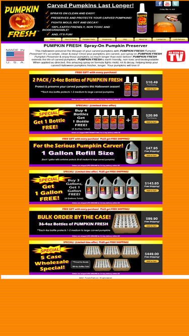 PUMPKIN FRESH, pumpkin preserver, spray on pumpkin preservative is clean & easy… Halloween's #1 pumpkin preserver. Pumpkins last longer!