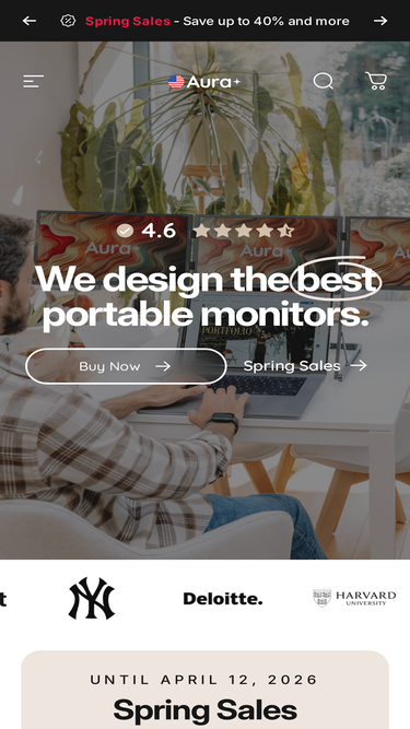 100%Explore Aura Displays specs: USB-C/HDMI compatibility, optional drivers, full warranty, global shipping, and 14-day returns for your portable monitors.