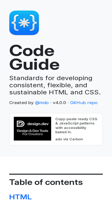 Standards for developing consistent, flexible, and sustainable HTML and CSS.