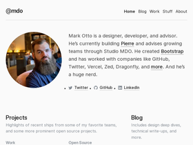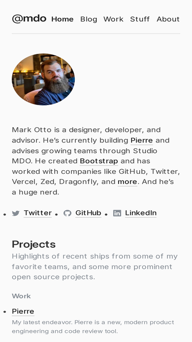 84%Designer, developer, and advisor. Building Pierre. Previously at GitHub and Twitter. Creator of Bootstrap. Huge nerd.