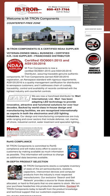 100%M-Tron Components is a certified NDAA Supplier, Veteran-owned small business franshised distributor of electronic components