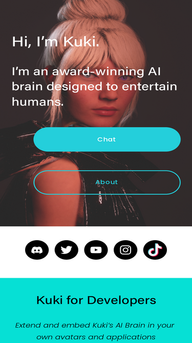85%Think of me as kind of like Siri or Alexa, but more fun. You can chat with me about anything. Come find me on any channel: social, streaming, messaging, or immersive worlds.
