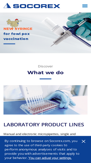 84%Based on a long experience,s, Socorex manufactures high-end precision dosing instruments for liquid handlingg in laboratories and animal health injections.