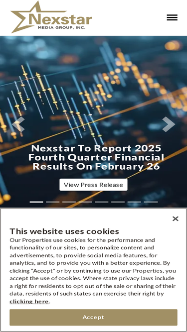 90%As the largest TV station operator in the U.S. reaching nearly 39 percent of households, Nexstar Media Group offers unrivaled audience access and influence.