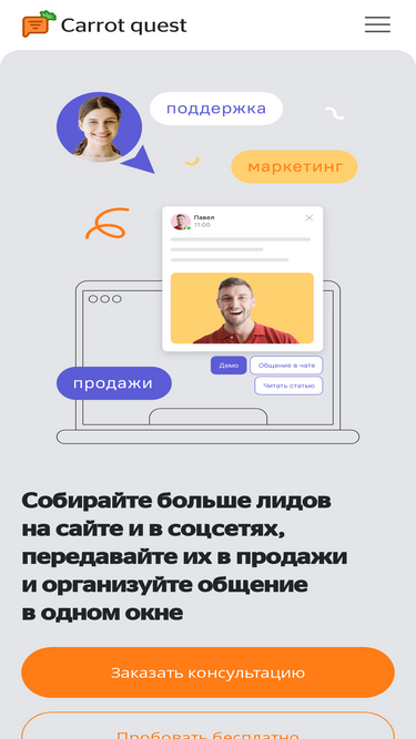 95%Легко интегрируйте Carrot quest с популярными CMS, CRM системами и другими сервисами