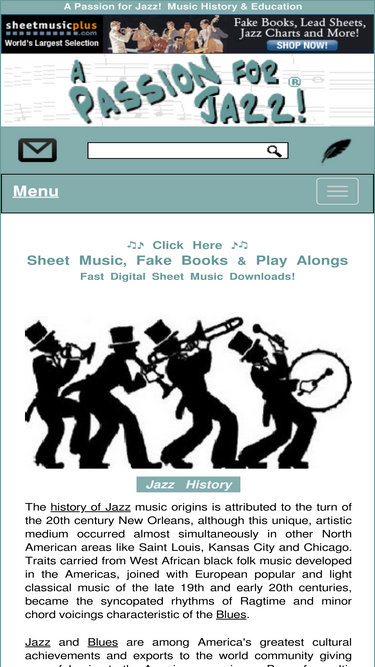 100%history of jazz music origins, styles and musicians featuring timeline, photos, festivals, glossary, guitar & piano chords, scales & online lessons.
