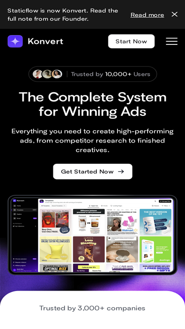 85%Your all-in-one hub for discovering and creating high converting static ads at lightning speed. The modern way to make static ads. Free sign-up. No Card Required.