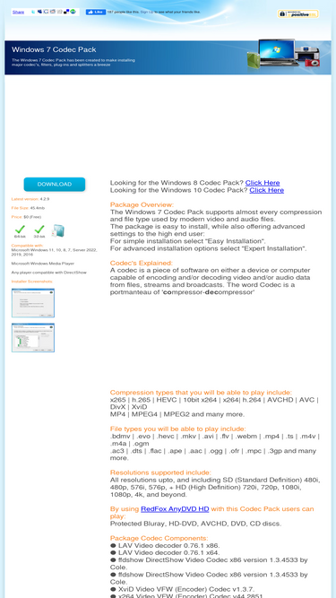 Download the free Windows 7 Codec Pack to install essential audio and video codecs, filters, and splitters for broad media playback support on Windows systems.