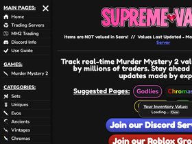 D'après les données Similarweb relatives aux visites mensuelles, le principal concurrent de mm2values.com en février 2026 est supremevalues.com. Le deuxième site le plus similaire à mm2values.com est murder-mystery-2.fandom.com, tandis que traderie.com complète le podium.