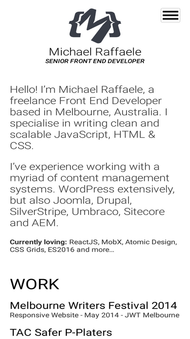 53%I’m a Freelance Front End Developer based in Melbourne. I write JavaScript, HTML & CSS websites and applications and also develop WordPress websites.