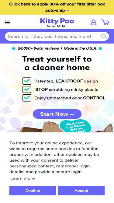 100%Discover Kitty Poo Club's convenient cat litter boxes which are stink-free, leak-proof and make owning a cat so much easier. Free shipping!