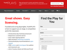 85%Plays and musicals for schools, youth theatres, universities, community theatres, professional theatres for young audiences and more!