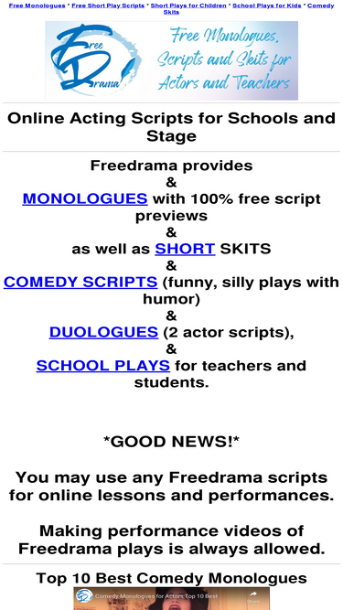92%freedrama.net has a great collection of drama games, theatre play scripts, lesson plans as well as drama activities for adults, teens and kids.