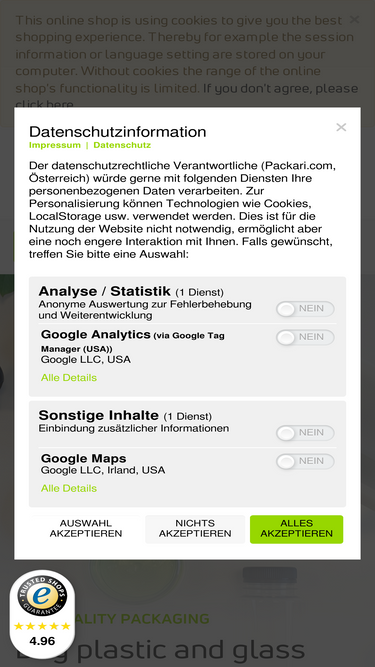 68%Übersicht Serviceleistungen: Abfüll Service: Produkt Gruppe: 1 Etiketten Service: Preis Gruppe: B Empfohlenes Maß Etiketten: B 145 x H 56 mm PET Packer sind für Kosmetik oder Lebensmittel geeignet! Nach Beschädigung der Hygieneverpackung kein Umtausch oder Rücknahme! Eigenschaften PET Dose: Eigenschaften Schraubdeckel: Nennvolumen: 100 ml Originalität: Ja Randvoll Volumen: 124 ml Höhe: 11 mm Durchmesser: 47,27 mm Gewinde: 38/400 Höhe: 86,82 mm Farbe: schwarz Innendurchm. Öffnung: 31 mm Dichteinlage: PS Einlage Gewinde: 38/400 Material: PP Farbe: braun Oberfläche: glänzend Material: PET Höhe Etikett maximal: 56 mm Detailbeschreibung PET Packer: 100 ml PET Kunststoff Dose, braun mit glatter Oberfläche. Diese PET Dose ist mit einem Gewinde 38/400 ausgestattet – einem sehr gängigen Gewinde im Bereich Kunststoff Dosen. Dadurch kann diese Flasche mit einer Vielzahl von am Markt erhältlichen Schraubverschlüssen kombiniert werden. Leere PET Packer sind für eine Vielzahl von Füllgütern verwendbar. Die PET Dosen werden jedoch hauptsächlich für Tabletten, Kapseln, Pulver, Creme und Salben eingesetzt. Diese PET Schraubdeckeldose ist auch für Lebensmittel zugelassen und ist somit lebensmittelecht. Detailbeschreibung Schraubdeckel: Kunststoff Schraubdeckel schwarz mit Gewinde 38/400 glänzend, glatt mit PS Dichteinlage (pressure sensitive Dichteinlage). Die PS Einlage schützt das Produkt und dient als Erstöffnungsgarantie.