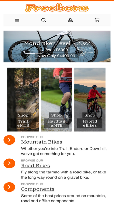 87%freeborn bikes - dealer for cube, marin, mondraker, genesis, ridgeback and cycling accessories based in horsham, west sussex.