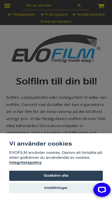 72%Guide till EVOFILM solfilm. Allt om EVOFILM, kvalitet, toningsgrader, garantier, hur man monterar EVOFILM mm.